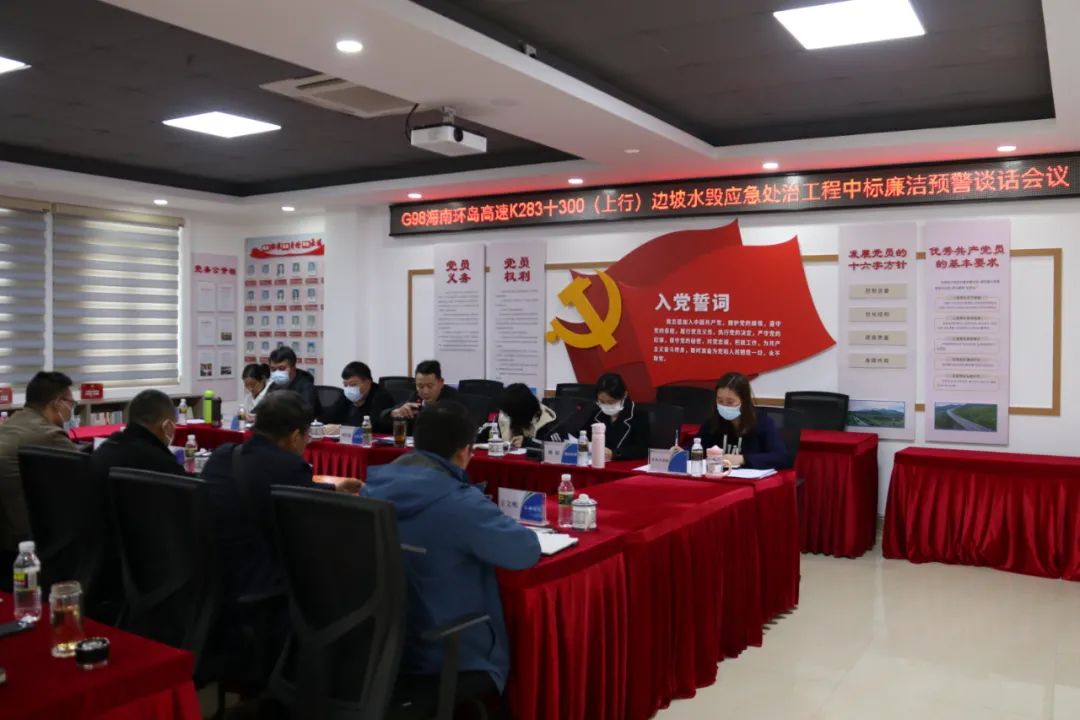 為確保G98環島高速K283+300(上行)邊坡水毀應急處治工程廉潔、高效、有序推進,2月25日下午,海南交控養護公司組織召開工程中標廉潔預警談話會議。 [更多]
