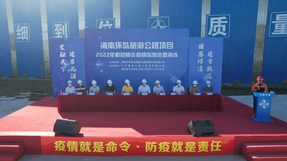 “我宣布,海南環島旅游公路項目2022年新冠肺炎疫情應急處置演練現在開始!”5月13日,在疫情演練指令下達后,海南環島旅游公路項目防疫應急處置演練在第三工區正式開始。