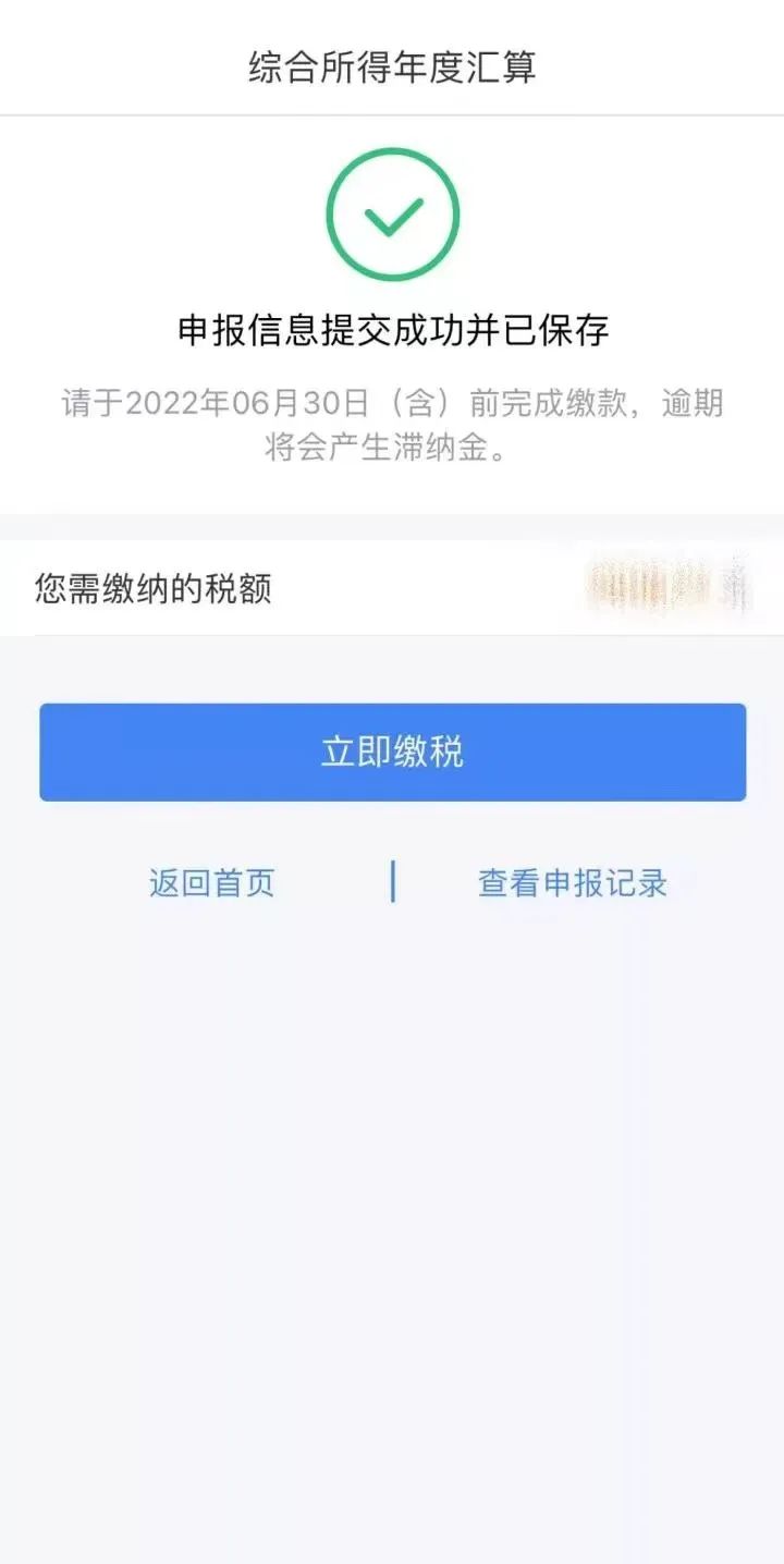 可以,您在個人所得稅手機APP年度匯算申報信息提交成功并保存后,系統會自動進入立即繳稅頁面,需要補稅的納稅人點擊“立即繳稅”,并根據提示可選擇線上支付方式進行繳稅。