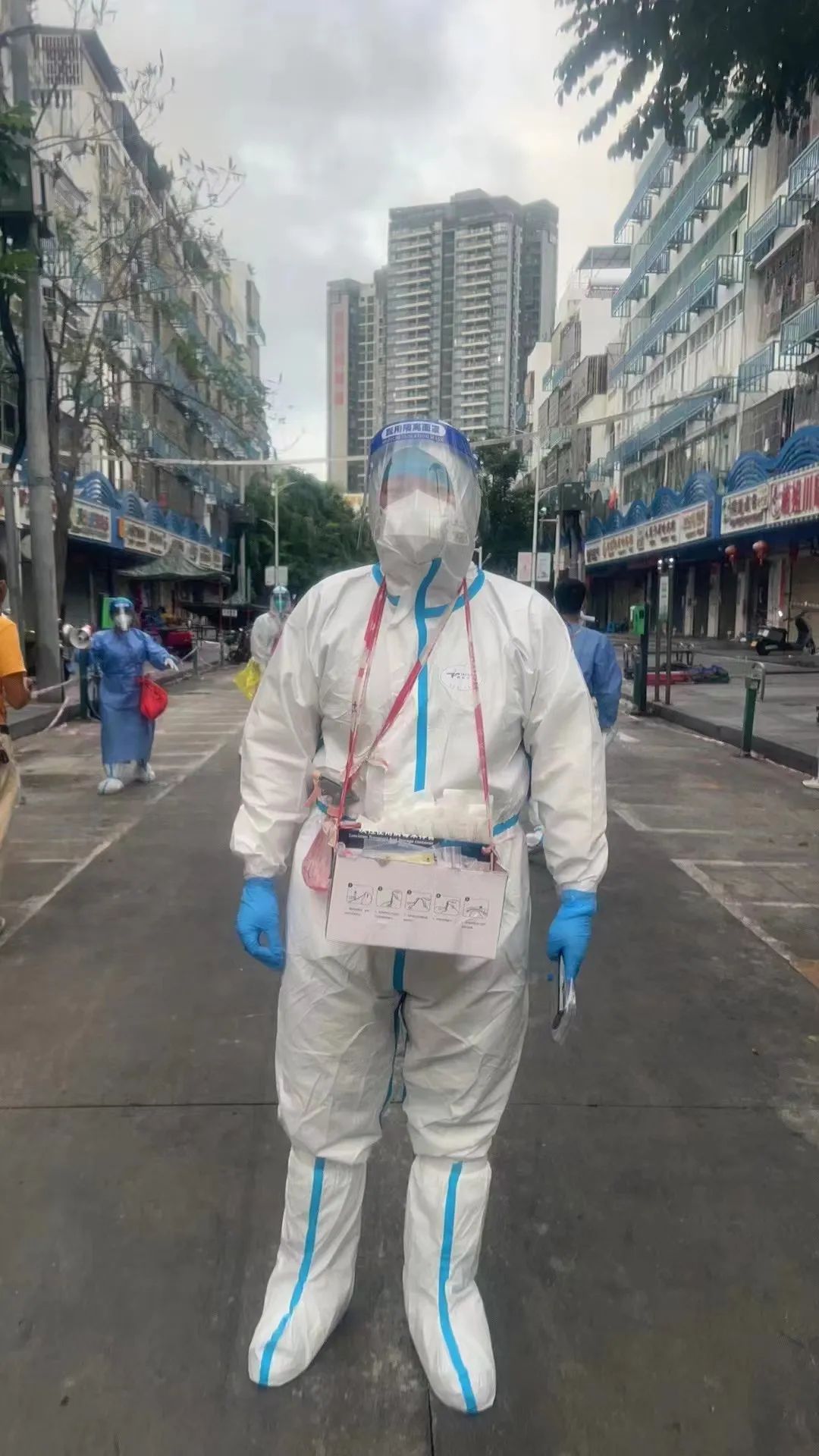 8月22日,在大家的共同努力下,符愷和他的隊友們圓滿完成了轉運任務。但是抗疫援助尚未結束,他們隨即轉戰支援社區工作。這次他分配到的任務是入戶做核酸信息采集工作,每天需要穿著厚厚的防護服,沿著長長的街道挨家挨戶上門進行信息采集。原來輕松爬上的樓梯,因穿著厚重的“大白”,戴著嚴實的醫用口罩,而變得十分艱難,每一層臺階對他們來說都是挑戰。一天的工作下來,經常是衣服已經濕透,可以擰出水來,脫掉手套,驚現雙手已被汗水泡得發白發皺。但這些對于志愿者來說,屬于“常規操作”。一代人有一代人的征程,一代人有一代人的擔當,青年人是社會發展運行的主力軍之一,每當在國家特殊困難時期,都得有青年人勇于站出來,勇于承擔社會責任,國家才能不斷渡過難關,迎來黎明的希望。