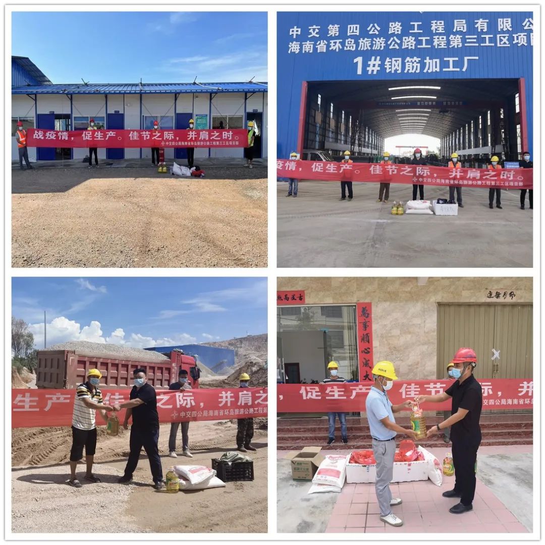 環島旅游公路項目三工區黨建聯盟開展了“中秋佳節送溫暖”活動,為堅守在崗位上的建設者送去了月餅、水果、豬肉、油、面等慰問物品,讓工友們在異鄉也能夠感受到“家”的溫暖,感受到項目部濃濃的溫情與關懷。同時向一線工友們致以了節日的問候,感謝他們在節日期間堅守在施工現場為項目建設付出勞動和努力,也叮囑工友們一定要做好節日期間安全生產工作和個人防疫工作,保證自身安全。其他工區也因地制宜開展了豐富多彩的活動。
