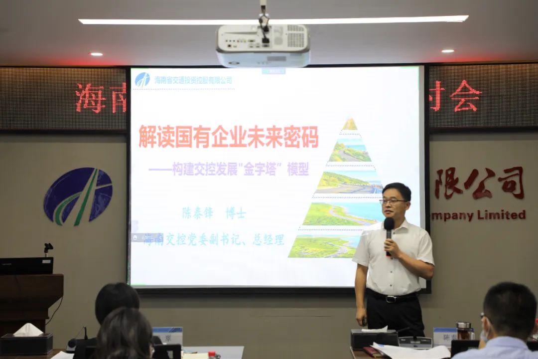 陳泰鋒以“解讀國有企業未來密碼——構建交控發展‘金字塔’模型”為主題,從國有企業功能分類和區別、地方政府融資平臺發展歷程、構建交控發展“金字塔”模型、解讀《海南交控高質量發展實施綱要(2022-2025)》四個方面,結合具體案例,給全體干部職工帶來了一場精彩的講座。