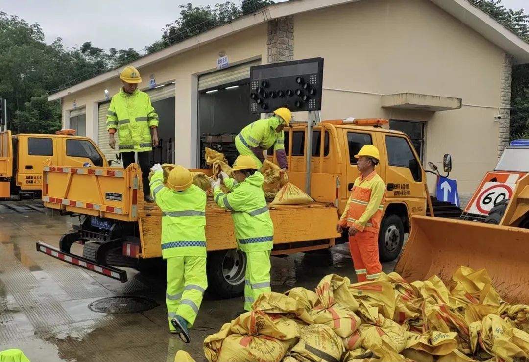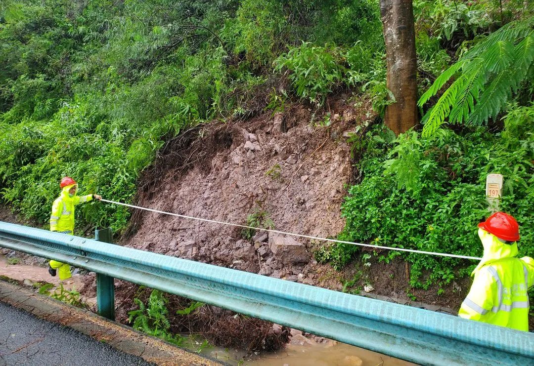 在防臺防汛主戰場,養護公司堅持預防預備、加強巡查和應急處置相結合,全面緊起來、動起來、快起來,確保防臺防汛工作萬無一失。一是全方位做好準備工作。人員到崗到位實行24小時值班制度,提前對車輛、機械設備、應急照明等設施進行檢查維護,緊急租賃挖機等裝備,儲備足量沙袋、冷料等應急物資。二是緊盯重要隱患點,加強巡查檢查。組織人員對積水點、易水毀點、歷史塌方點、重點高邊坡、重點橋涵等關鍵隱患點開展觀測跟蹤,加強廣告牌、易倒伏樹木、路燈等風險點巡查,做到及時發現快速清障。三是應急處置及時有效。10月20日上午,定安管理站巡查人員于G98環島高速右幅K44+860處發現一處小型滑坡,經現場勘察發現,滑坡面積約為50平方,滑坡塌方未對道路通行產生影響,巡查坡頂及滑坡點周邊邊坡也未發現異常。定安管理站當即緊急組織人員備好沙袋、彩條布等物資前往該滑坡點開展應急處置,避免滑坡擴大,確保道路安全通暢。