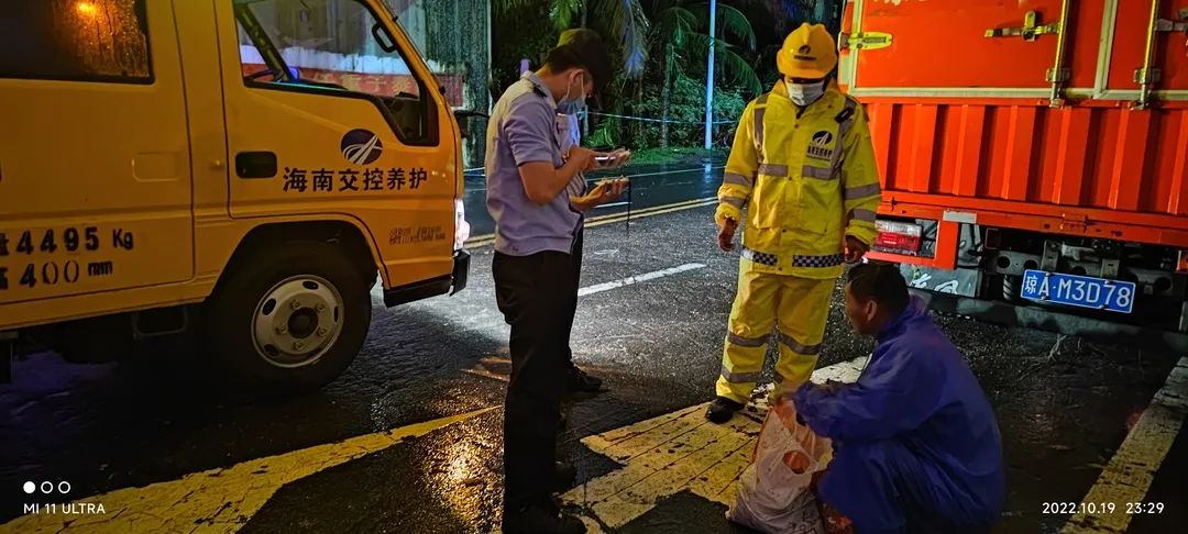 櫛風沐雨、砥礪前行,680公路管養路線上,“車輪上黨小組”是最動人的那抹紅。10月19日,瓊海站“車輪上黨小組”成員崔傳福、蘇慶福在臺風天夜間巡查路況途中,發現冒著大雨顫顫巍巍行走在應急車道的老人,情況極其危險。兩位職工立即停車詢問,發現老人因風雨過大迷失方向誤上高速,找不到回家的路,也聯系不到家人。崔傳福和蘇慶福立即與110取得聯系,駕駛養護車輛載著老人駛下龍滾互通,托付給龍滾派出所民警,幫助老人找到回家的路。