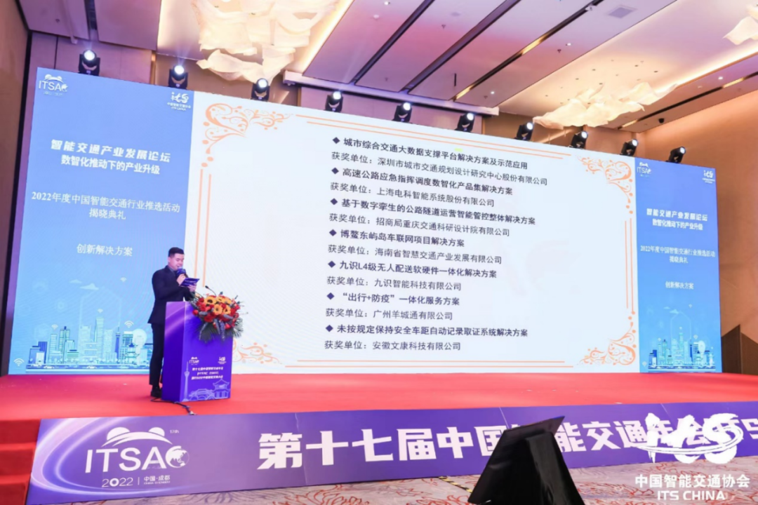 近日,由中國智能交通協會主辦的第十七屆中國智能交通年會(ITSAC 2022)暨2022中國智能交通大會在成都市隆重舉行,大會以“數字化背景下的ITS創新發展”為主題,頒布了中國智能交通行業系列評選活動系列獎項。海南交投憑借在博鰲東嶼島車聯網項目先進的技術和成熟的解決方案,獲評2022年度中國智能交通行業“創新解決方案”榮譽稱號。