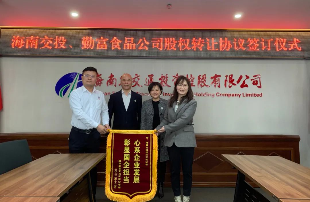 12月19日,在海南交投黨委黨員、副總經理梁翠的見證下,海南交控投資有限公司(下稱“投資公司”)與海南勤富食品有限公司(下稱“海南勤富”)舉行股權轉讓簽約儀式,這標志著海南交投又一家財政股權投資企業成功退出。投資公司執行董事孫瓊雅主持,投資公司副總經理胡珊珊、財務總監王珊,海南勤富總經理周云峰等出席簽約儀式。