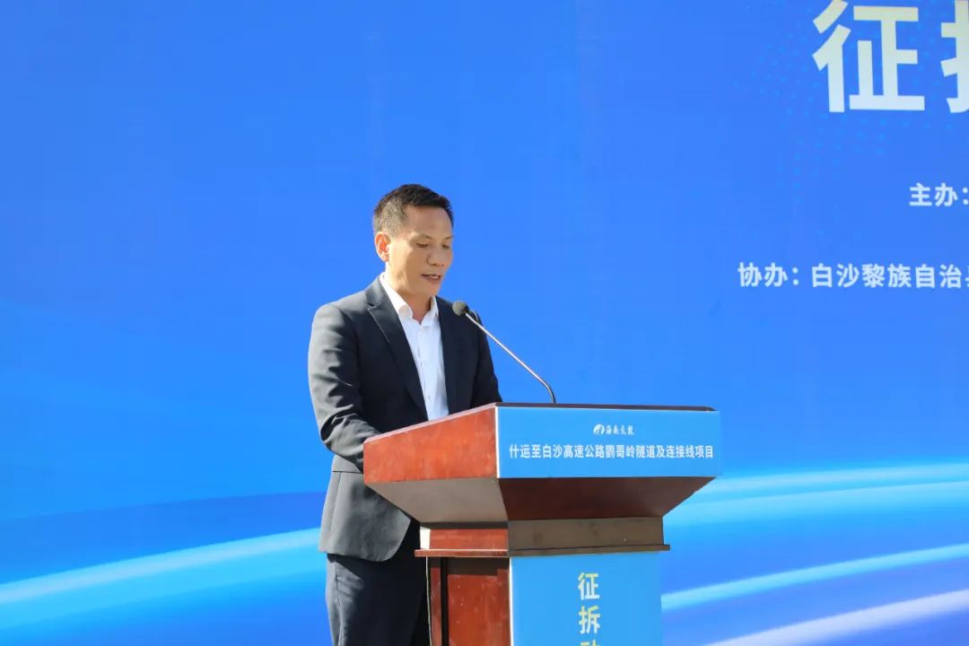 省交通運輸廳總工程師黃澎、省資規廳總規劃師王俊剛,白沙縣委書記鄧偉強、縣長黃聰,五指山市常委、常務副市長賈鵬,瓊中縣副縣長崔大偉,以及海南交投黨委副書記、總經理陳泰鋒,黨委委員、副總經理陳敬出席。項目所在市縣相關領導及各部門負責人,海南交投辦公室、工程部、項目公司負責人及各參建單位與新聞媒體代表參加。