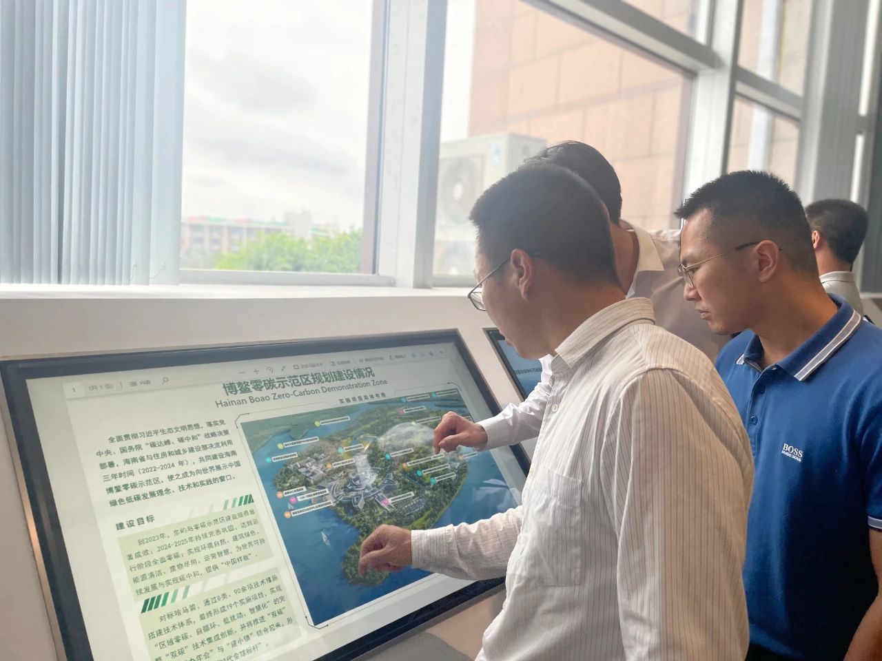 4月26日下午,陳敬一行到瓊海調研“博鰲零碳示范區”新型電力系統示范項目及東嶼島車聯網項目,了解建筑低碳化、能源綠色化等可再生能源利用項目的建設,參觀了東嶼島酒店屋面光伏、“零能耗”論壇新聞中心、光儲充示范站及智慧數字化管理系統,圍繞清潔能源供應、綠電消納、智慧電力等綜合智慧能源創新方面進行了研究探討。