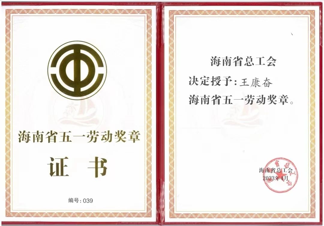 據悉,在此次表彰大會上榮獲“海南省五一勞動獎章”的還有環島旅游公路工程總承包部總負責人兼第五工區項目經理李殿斌、環島旅游公路工程第六工區項目經理包國軍。