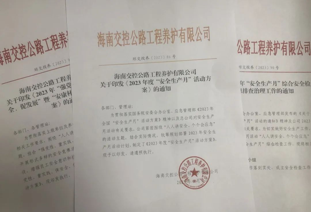 為深入推進“安全生產月”活動,緊扣“人人講安全 個個會應急”主題,海南交投養護公司開設“安全在路上”宣傳專欄,全方位宣傳公路養護安全生產工作典型,不斷營造學安全、講安全、促安全活動氛圍,助力活動成效提升。