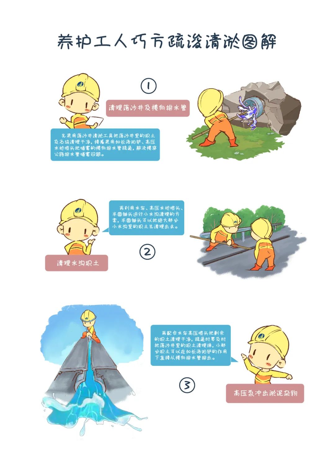2023年6月,養護公司坡心管理站向公司申報,將“巧方疏浚清淤”項目列入“紅色工匠工作室”養護作業管理類金點子專項課題進行探索。考慮到改造小水溝蓋板成本過高等現實問題,坡心管理站站長李列,帶領副站長、技術員、養護工,反復研究優化養護方案,盡量減少占道時間,在做好安全警示工作的同時,利用水車、加長洛陽鏟、高壓水槍噴頭、特制半圓鋤頭、落沙池清淤工具進行清淤實驗。