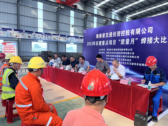 海南(nan)交投在建重點項目2023年質量月鋼筋焊(han)接技能比(bi)武現場