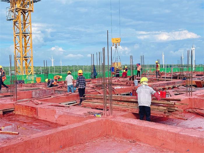 9月21日,位于峨蔓鎮黃沙村的儋州火山海岸驛站項目一期建設現場一片繁忙。截至目前,項目一期游客集散中心的觀景平臺及以下已全部完成混凝土澆筑,正在進行觀景平臺的圓柱鋼筋綁扎;配電房完成結構封頂和外墻砌筑工程;停車場完成場地平整,正在施工室外雨污管網,整體形象進度完成約80%。該項目一期計劃今年10月底完成工程主體結構建設,12月底投入商業運營。