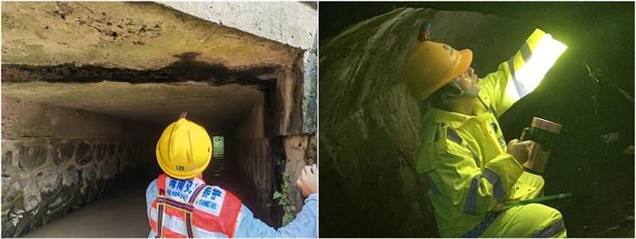 G98海南環島高速公路共有涵洞1888處,為全面掌握結構物基礎數據,養護公司全面排查,依托養護信息系統,實時更新完善“一涵一檔”數據。邀請專業檢測機構進行定期“體檢”,確保對隱患精準“把脈”、底數清晰。