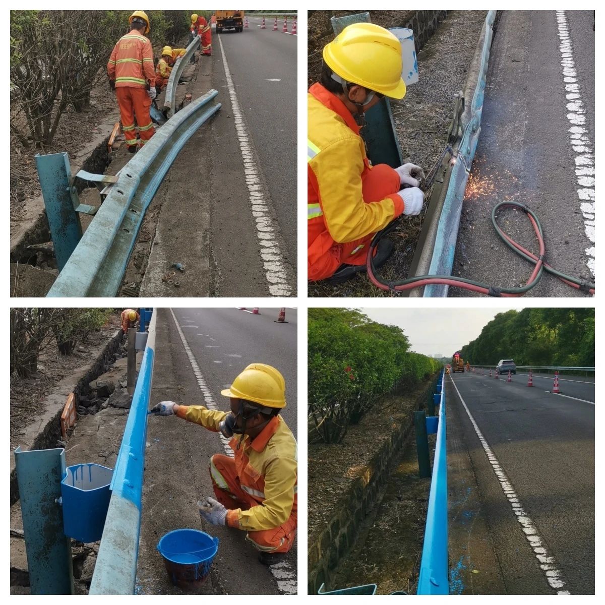 及時(shi)檢查各(ge)類交安設施,修復因(yin)事故損壞波形(xing)護欄、防(fang)眩板,助力安全(quan)出行(xing)。