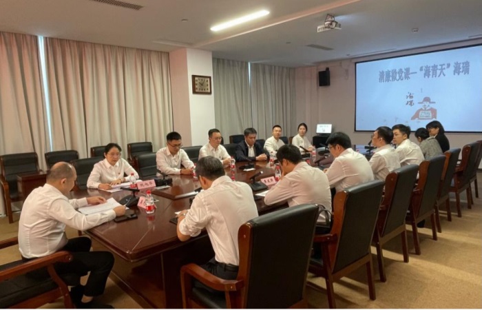 在參觀完海瑞文化展館后,支部書記莫光財主持召開支部黨員大會,對推動科技板塊清廉建設作出安排部署。紀檢委員阮旭華在會上宣貫了《關于推動科技板塊清廉建設實施方案》,并給大家上了一堂關于海瑞精神的清廉微黨課。
