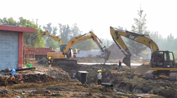 11月30日,海南環島旅游公路火山海岸驛站一期項目進入收尾沖刺階段,施工人員正在進行鋼架結構屋面面板安裝和室外工程施工作業,現場一片繁忙景象。