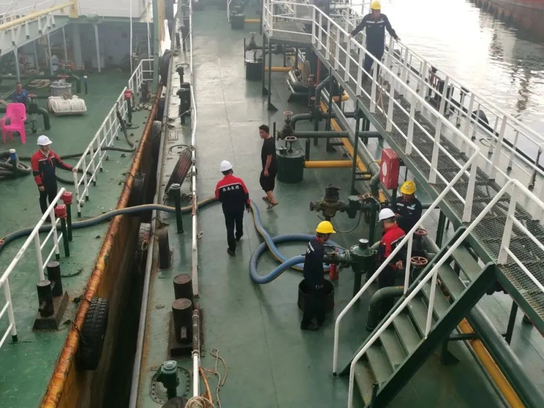 經過一系列驗船檢查,“國新76”船舶的人員配備、各項證書、消防安全等均符合要求,同時在各方共同努力下,消防應急演練也順利完成,船舶圓滿實現交接。船舶交接結束后,“國新76”駛向目的海域,并成功和“華利油9”對接,在三亞中心漁港完成首單海上加油業務,實現“開門紅”。