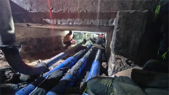“這個涵洞只有60公分高,施工作業面極度狹小,進去后只能匍匐在地上,沒辦法按照常規方式處置。再加上臨近春節,施工隊、混凝土還有專業設備調用困難,為搶險工作增加了一定難度。”現場負責人介紹。