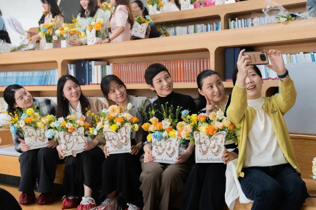 隨后,大家在花藝老師的指導下,大膽發揮自己的想象,循著花香、聆聽絮語、掌握技巧,用靈巧的雙手將玫瑰、郁金香、洋牡丹等多種花材有層次的搭配在一起,形成了一幅幅色彩繽紛、獨具匠心的藝術作品。