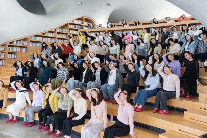 在書香環繞、面朝大海的氛圍里,女職工們在瑜伽老師的引導下,首先通過音樂、體式、呼吸、冥想等方式,時而屈腿、時而展臂、時而彎腰,進行了一場舒展身體、打開內在的修心課程,現場處處洋溢著青春與活力,展現了“半邊天”的智慧和英姿。