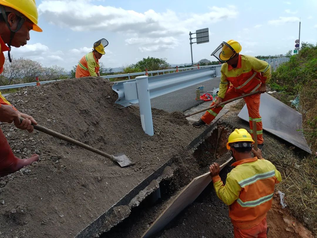 春山蘇醒,草木蔓發。萌動三月,在全國兩會召開之際,海南交投養護人也在忙于“春耕”,全面加強沿線公路巡檢,自主開展隱患處置,用心播撒“平安高速”的“種子”,竭力維護兩會及“博鰲”年會的和諧環境。3月2日,養護公司樂東管理站在收到沿線果農稱在石門互通下護欄外有土壤流失的消息后,便立刻組織人員前往隱患點進行實地踏勘。