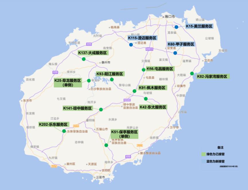 2024年3月新接管服務區,基礎設施接管后同步籌備建設。 |