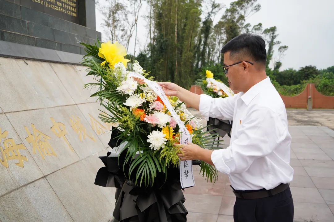 活動伊始,4名黨員代表向英勇獻身的烈士敬獻花籃,項目管理公司黨支部書記李凌云為花籃整理緞帶,表達哀思、緬懷之情。
