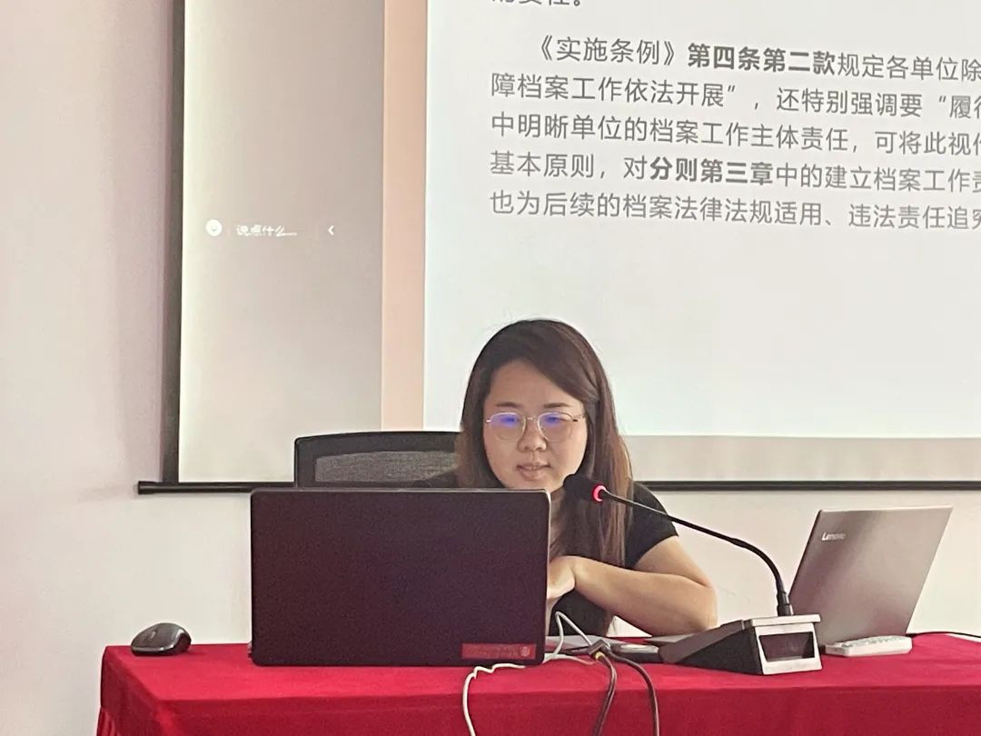 下午,公司內訓師圍繞新頒布《中華人民共和國檔案法實施條例》演變和立法要旨、重點規定、公司文件歸檔范圍和整理要求、管理站檔案管理要求等內容開展企業檔案管理培訓,幫助參訓人員全面掌握檔案管理的基本知識和技能。在保密教育專題培訓中,針對新修訂版《中華人民共和國保密法》修訂和實施的背景意義、重點內容、國家秘密與基本范圍、工作秘密事項清單等內容進行具體講解,為全體參訓人員上了一堂富有意義的警示教育和保密知識課。