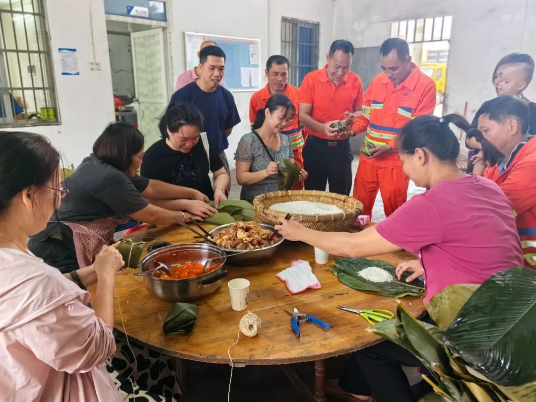紅心映端午,傳承文化情。養護公司在定安管理站舉行包粽子活動。活動現場,指導老師詳細講解制作粽子的方法和注意事項。隨后,養護公司“粽子生產車間”便開始了他們的工作,他們提前準備粽葉、豬肉、蛋黃等餡料,精心制作出一個個獨具風格的粽子。盡管有些職工仍處于“初級工”的水平,包出來的粽子大小不一、各具神態,但在現場大家互相幫助,積極探討,呈現出熱烈的氣氛。隨后,黨員、職工代表誦讀了《加強文化遺產保護傳承 弘揚中華優秀傳統文化》《端午詠屈原》等文章,共同觀看了《屈原》紀錄片,一起學習端午節的由來和屈原的故事,共同回望歷史,讓大家在趣味體驗中追思先賢、傳承文化、感悟其愛國情懷,學習其高尚品格。