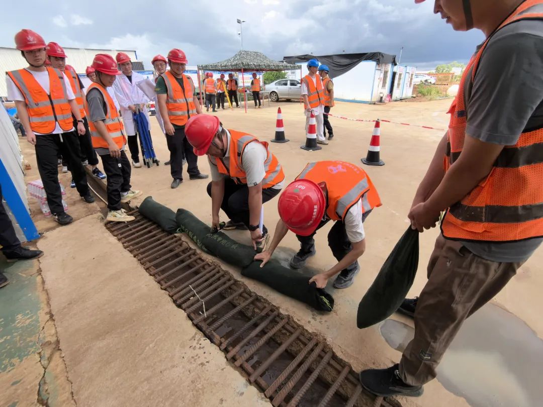 中交一公局集團有限公司洋浦疏港高速公路SG02標項目經理部針對近期防臺防汛工作,開展專項應急救援演練,演練科目貼合實際,有效檢驗防臺防汛應急處置水平。