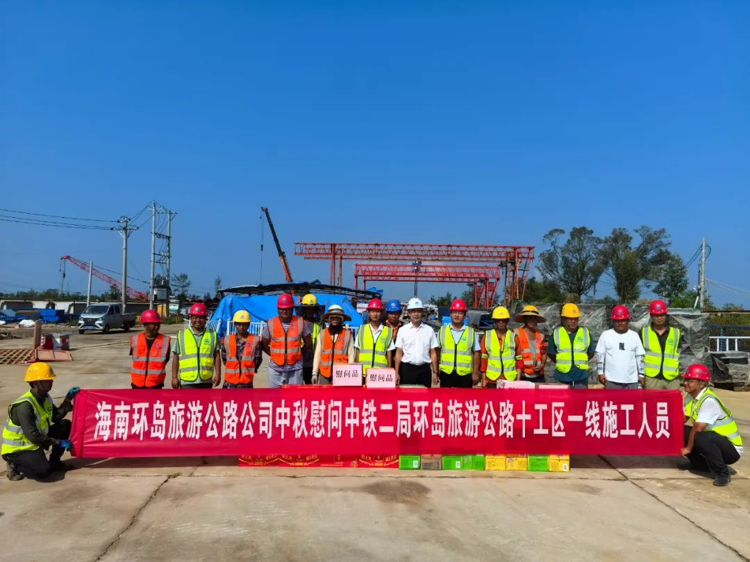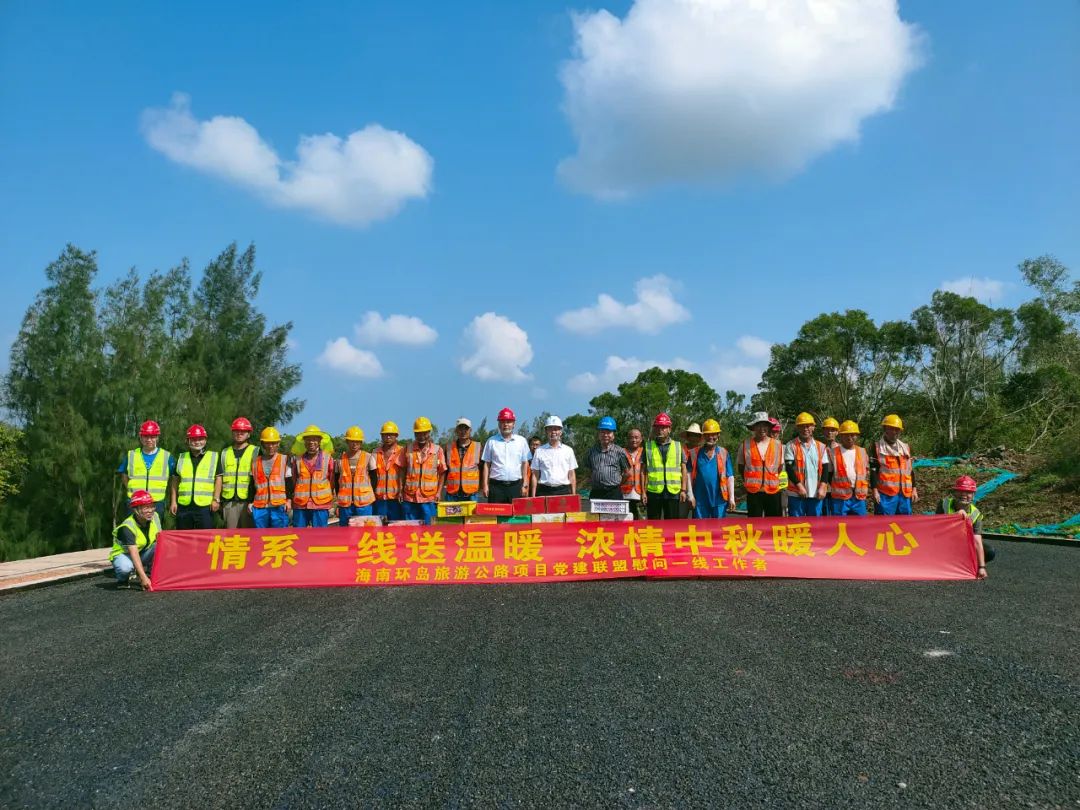 9月16日,海南環島旅游公路項目黨建聯盟特別組織開展了主題為“情系一線送溫暖,濃情中秋暖人心”的節日慰問活動。海南交投環島旅游公路公司董事長、總經理吳卓科,同環島旅游公路監理單位代表及項目主要管理人員一行深入環島旅游公路環新英灣支線項目建設一線,向節日期間仍堅守崗位、辛勤付出的建設者們致以誠摯的節日問候和崇高的敬意。