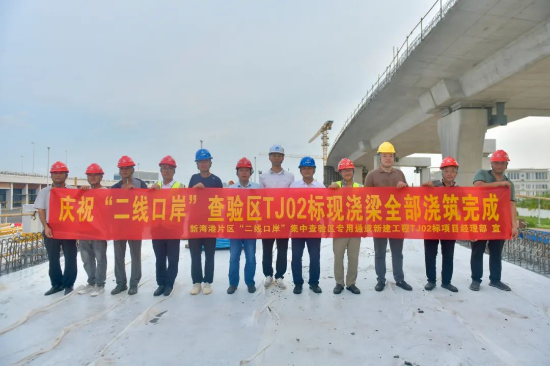 新海港片區“二線口岸”專用通道項目TJ01標、TJ02標分別于2024年9月16日、9月4日完成標段內現澆箱梁施工任務,為實現2024年年底通車目標奠定了堅實基礎。