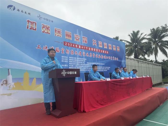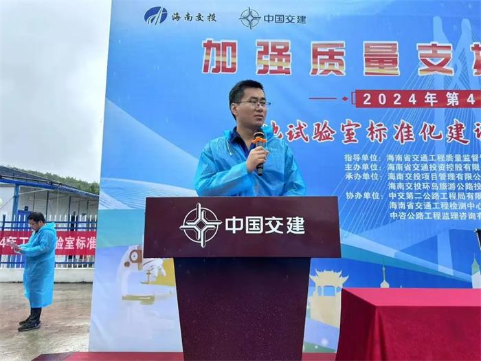 隨后,海南交投項目管理公司副總經理鄒威波宣貫了2024年“質量月”工地試驗室標準化建設觀摩暨試驗檢測知識競賽活動方案,裁判員代表和選手代表相繼作表態發言。