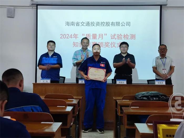 下午,試驗檢測知識競賽正式開始,知識競賽分為理論考試和現場答題兩個環節,參賽選手你追我趕、爭先恐后,現場氣氛濃厚。經過多輪激烈的角逐,洋浦疏港高速公路SG03標工地試驗室榮獲團體一等獎,環島旅游公路工程第十一工區工地試驗室、“二線口岸”專用通道項目涉鐵標工地試驗室榮獲團體二等獎,鸚哥嶺隧道項目TJ01工地試驗室、鸚哥嶺隧道項目TJ03工地試驗室、環島旅游公路工程第四中心試驗室獲得團體三等獎;鸚哥嶺隧道項目TJ02標工地試驗室李明浩榮獲個人一等獎,洋浦疏港高速公路中心試驗室田逢雨、大茅隧道總監辦工地試驗室沈勇榮獲個人二等獎,洋浦疏港高速公路SG03標工地試驗室劉麗強、鸚哥嶺隧道項目TJ03工地試驗室余創、洋浦疏港高速公路中心試驗室張蕓榮獲個人三等獎。活動在頒獎儀式中順利落下帷幕。