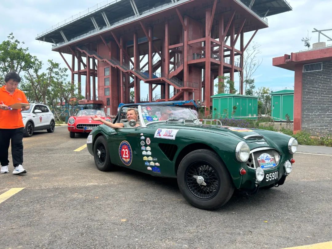 11月18日,2024世界老式汽車海南公開賽車輛途經儋州火山海岸驛站,驛站作為本次汽車公開賽的計時點之一,全力以赴為賽事的順利開展保駕護航。