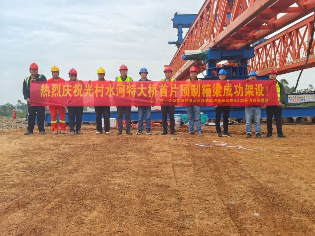 12月16日,洋浦疏港高速SG02標項目光村水河特大橋首片預制箱梁成功架設,標志全線最長橋梁正式進入上部結構施工階段,項目建設取得又一實質性進展。