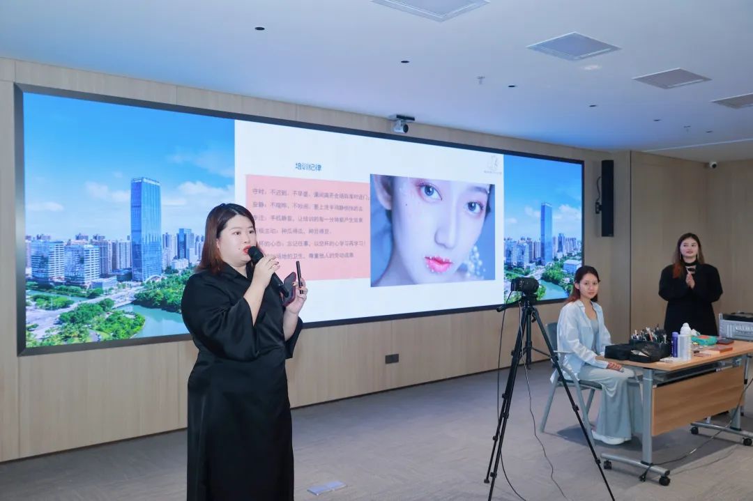 緊接著,美妝課堂正式開始。導師從膚質精準識別、底妝無瑕技巧到耳飾巧妙搭配,全方位、多角度地進行了細致入微的教學,針對不同人群的特質,生動演示了日常通勤妝容的打造精髓。