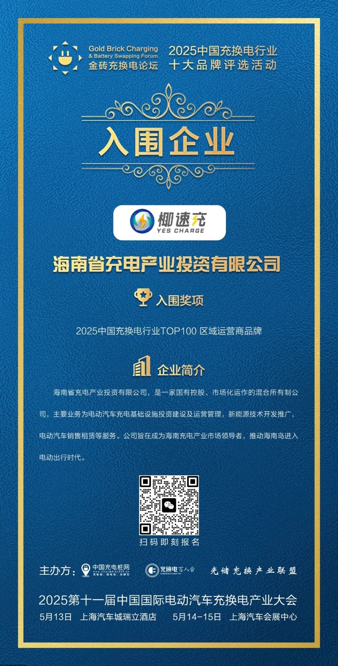 此次入圍2025中國充換電行業TOP100區域運營商品牌,是對海南省充電產業投資有限公司在充換電領域所取得成績的高度認可,也將激勵公司在未來持續創新、提升服務,致力發展成為海南充電產業市場的領導者,為推動海南島進入電動出行時代、助力中國充換電行業高質量發展貢獻更多力量。.jpg)