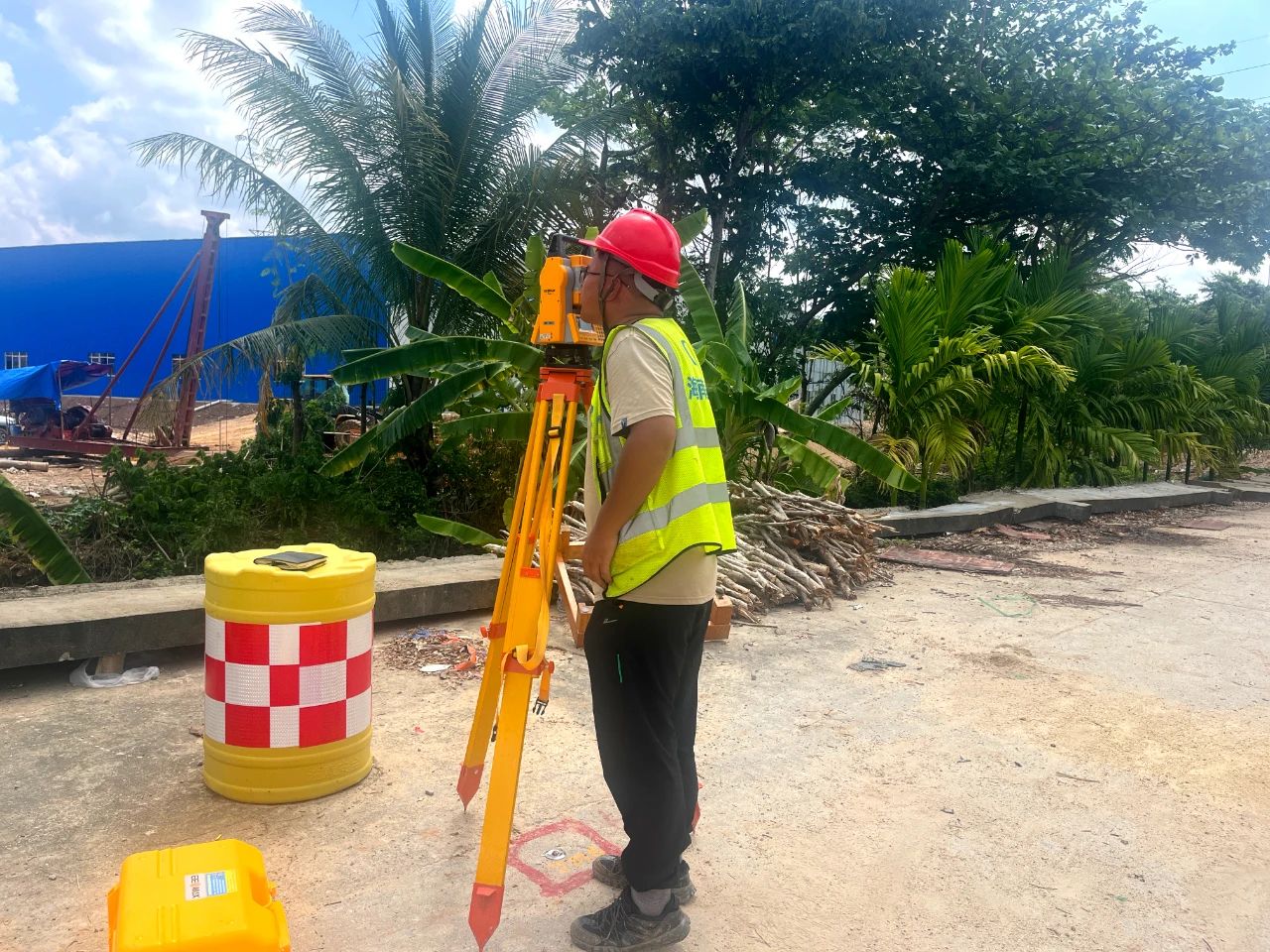 技術員們有條不紊地開展原地面測量工作,持專業儀器仔細測量、精確勘測。施工中,不斷復核數據,每一組數據的記錄、每一次坐標的校準,都凝聚著實干篤行。他們用腳步丈量工地,用儀器繪制藍圖,以高度的責任感和專業精神為施工推進提供可靠的數據支撐,為工程精準落地筑牢根基。