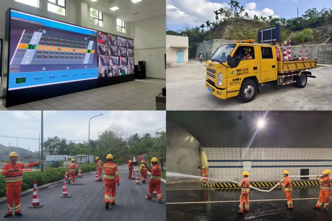 為提升應急搶險能力,養護公司在永興、瓊海、三亞等事故多發路段配備了隨車吊、發電機等設備,確保在緊急情況下能隨時投入作戰。提前組織開展隧道應急、公路阻斷等場景演練,提升隊伍協同作戰能力。安排三個班次和一組機動人員,全天候值守在長隧道應急點,確保突發狀況下迅速展開救援。加強與交警、消防等部門的信息共享和聯動配合,高效處置交通事故49起,疏通擁堵路段65次。在4月30日山海高速暢好隧道危化品運輸車輛側翻事故和5月2日海三高速車輛側翻事故中,養護公司規范執行預案,第一時間啟動應急響應,迅速統籌人員20分鐘抵達現場,10分鐘完成管制和繞行引導,同時隨車吊、清障車就位待命。在事故處置中,養護公司分別在現場移交后30分鐘內完成隧道清理,60分鐘內完成永興路段通車,流暢地完成多部門協作分工,避免了人員傷亡。
