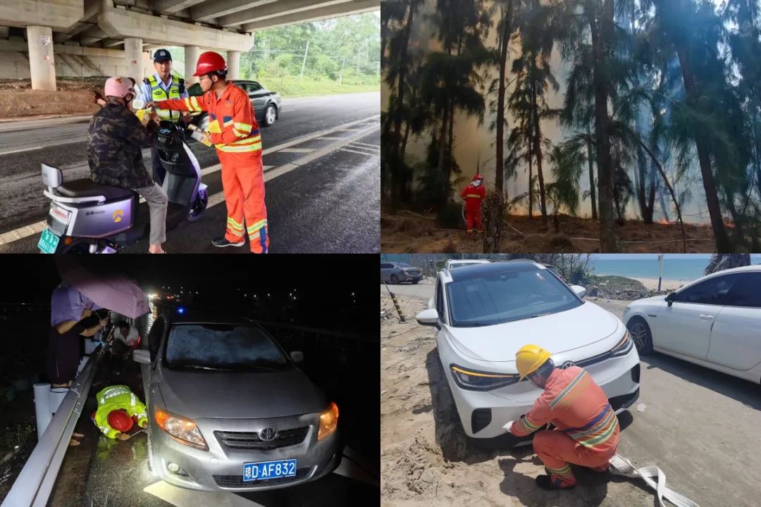 “車輪上黨小組”始終保持“服務群眾”初心,為過往司乘人員提供緊急救援等服務。他們是“宣傳員”,節前深入村居、服務區普及交通安全知識,提醒司乘人員注意行車安全;暴雨突至,他們化身“救生員”,冒著狂風大雨為拋錨游客檢修輪胎;當防風林火情突發,他們又是“消防員”,第一時間趕赴現場,爭分奪秒撲救火勢,用一次次救援的實際行動詮釋了黨員先鋒模范作用。
