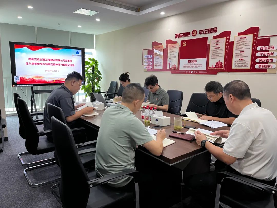 7月22日下午,海南交投交建公司召開深入貫徹中央八項規定精神學習教育交流會。黨支部書記王翼主持會議,支部全體黨員、中層以上干部參加。