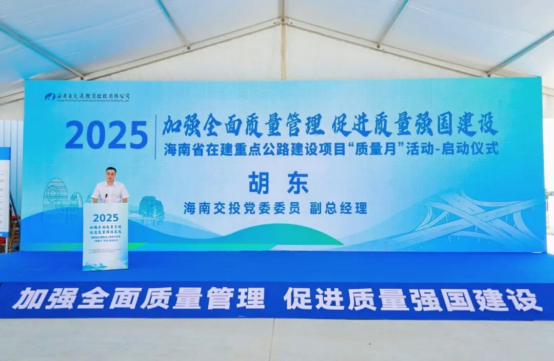 9月2日,海南省在建重點公路建設項目2025年“質量月”活動啟動儀式在G98環島高速公路大三亞段擴容工程土建1標順利舉行。本次活動以“加強全面質量管理 促進質量強國建設”為主題,由海南省交通工程質量監督管理局、海南交投聯合主辦。