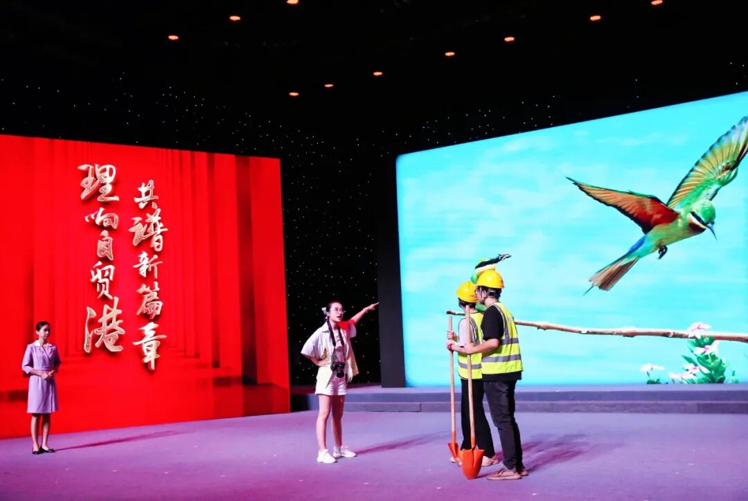 《一(yi)條“珍(zhen)珠(zhu)項鏈(lian)”的故(gu)事》,通過男女主講(jiang)賈界(jie)峰、鐘玉婷聲(sheng)(sheng)情并茂(mao)地宣(xuan)講(jiang),黃(huang)蕾燕、張(zhang)志通、陳(chen)梓鋒、陳(chen)必云、吳博、韓續等(deng)演(yan)(yan)(yan)員的精彩演(yan)(yan)(yan)繹,穿插以精心拍攝的各路(lu)段優美視(shi)頻和(he)一(yi)個旅游公(gong)路(lu)現(xian)場(chang)采訪視(shi)頻,生動展現(xian)了海南(nan)(nan)環(huan)島(dao)旅游公(gong)路(lu)是一(yi)條智慧路(lu)、生態(tai)路(lu)、民(min)生路(lu),“它將山海之(zhi)美、人文之(zhi)韻(yun)、科技之(zhi)光、生態(tai)之(zhi)綠(lv)、民(min)生之(zhi)盼串珠(zhu)成鏈(lian)”,正在全力打造(zao)成展示“理響自貿港”形象的窗口和(he)“海南(nan)(nan)人民(min)的傳家(jia)寶、海南(nan)(nan)島(dao)的傳世(shi)之(zhi)作”。表演(yan)(yan)(yan)結束,全場(chang)響起一(yi)片熱烈(lie)的掌(zhang)聲(sheng)(sheng)。