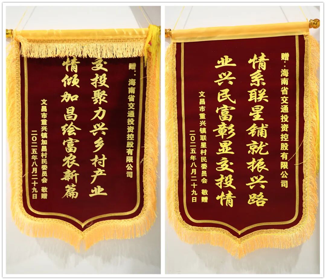 2023年7月(yue)至2025年8月(yue),海南(nan)省交(jiao)通投(tou)(tou)資控股有限公司(以(yi)(yi)下簡稱(cheng)“海南(nan)交(jiao)投(tou)(tou)”)以(yi)(yi)黨建為引領,深入貫徹落實習近平總(zong)書記(ji)關于“三農”工作(zuo)的(de)重(zhong)要論述,全(quan)力推進文昌(chang)市(shi)重(zhong)興鎮鄉(xiang)村(cun)振(zhen)興工作(zuo),與當地(di)鎮委、鎮政府共商發展(zhan)藍圖,累計(ji)投(tou)(tou)入幫(bang)扶(fu)資金180.2萬元(yuan),實施產業、民(min)(min)生、基(ji)建等項(xiang)目9個。近日(ri),加(jia)昌(chang)村(cun)委會、聯(lian)星村(cun)委會分別向海南(nan)交(jiao)投(tou)(tou)贈送錦旗“交(jiao)投(tou)(tou)聚力興鄉(xiang)村(cun)產業 傾情加(jia)昌(chang)繪富(fu)農新篇章”“情系聯(lian)星鋪就振(zhen)興路 業興民(min)(min)富(fu)彰(zhang)顯交(jiao)投(tou)(tou)情”,生動詮釋了當地(di)干(gan)部群眾對交(jiao)投(tou)(tou)幫(bang)扶(fu)工作(zuo)的(de)高(gao)度認(ren)可。