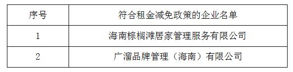 根據《中共海南省國有資產監督管理委員會委員會關于認真貫徹落實省政府應對新型冠狀病毒肺炎疫情相關措施的通知》(瓊國資黨〔2020〕6號)以及《關于進一步明確省屬國有資產類經營用房減免中小企業旅游企業房租租金有關工作的通知》(瓊國資財〔2020〕22號)文件精神,為切實幫助我省中小企業在防控新冠疫情期間減本降負、渡過難關,在我司內部認真審核的基礎上,現擬對符合租金減免政策的企業名單予以公告,歡迎社會各界監督。公示時間:2020年5月8日-5月13日(5個工作日),監督電話:18976203336。