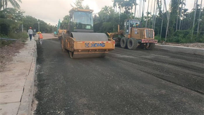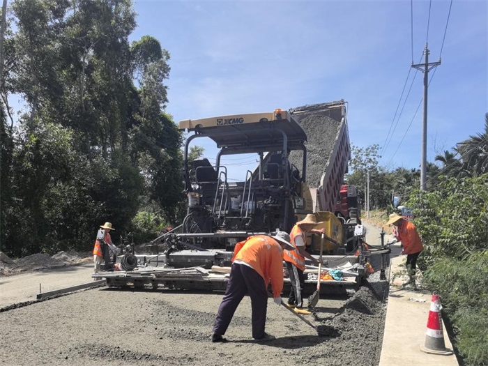省道S213加博線嘉積至博鰲禪寺段改建工程與省道S303屯大線改建工程同樣“火力全開”。前者在GK3+150-GK3+190標段開展水泥穩定碎石基層攤鋪,后者則聚焦主線瀝青面層施工,百余名建設者以“不停工、不斷檔”的戰斗姿態沖刺年底通車目標,兩臺攤鋪機同步作業、多臺壓路機梯隊碾壓,已完成的試驗段壓實度超98%,平整度誤差控制在2毫米內,用精度與速度詮釋“海南效率”。