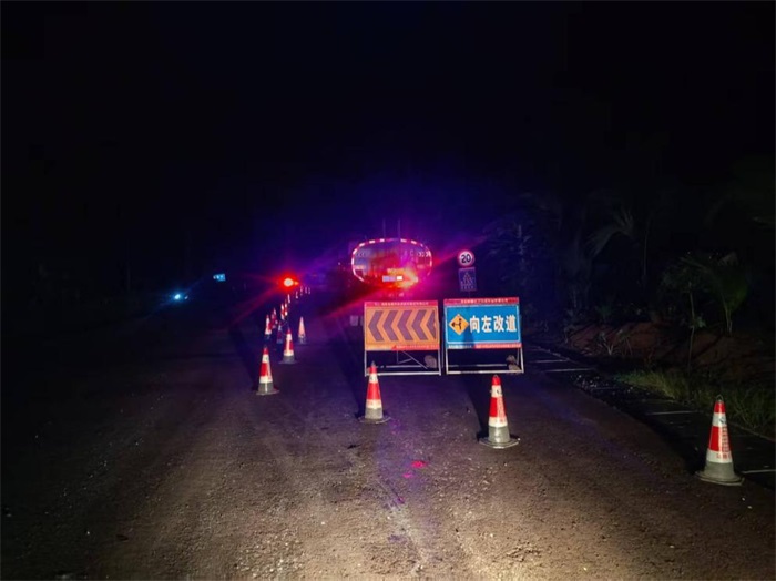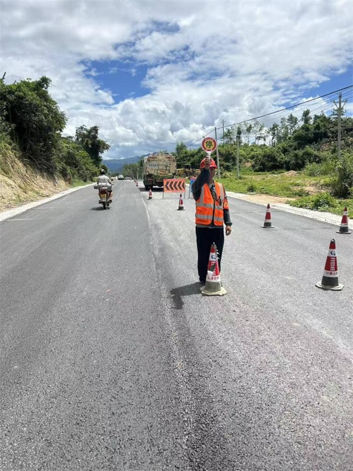 國道G540毛九線項目針對節日車流量大的特點,在施工路段設置完善的交通警示標志,配備專職疏導員,增設警示燈與安全錐桶,夜間加強警示照明,確保通行安全。同時,實行分時段、分路段交替施工,最大限度減少對交通的影響;洋浦疏港高速SG03標安全部長陳文標沿路排查積水排放與安全標識使用情況,反復強調“關注天氣預警、維護積水路段、落實安全制度”,確保突發情況及時處置;省道S213加博線嘉積至博鰲禪寺段改建工程安全員孫銳頂著烈日規整路錐、防撞桶,一遍遍測量間距,讓安全設施“瞪大眼睛”,杜絕安全意識“打盹”。