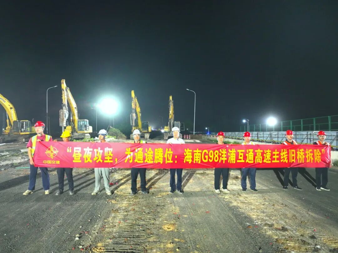 據悉,S308省道作為區域交通要道,2025年統計交通量達1340輛/小時,交通流量極大。本次舊橋拆除工作是海南G98環島高速洋浦互通立交改造工程關鍵節點,為兼顧項目施工進度與S308省道有序通行,海南交投項目管理公司組織施工團隊多次實地勘查,對交通流量、橋梁結構、施工風險等進行全方位統計分析與研討,最終確定“夜間封閉、同步施工、限時恢復”的施工方案,將拆除作業窗口精準壓縮至15小時。